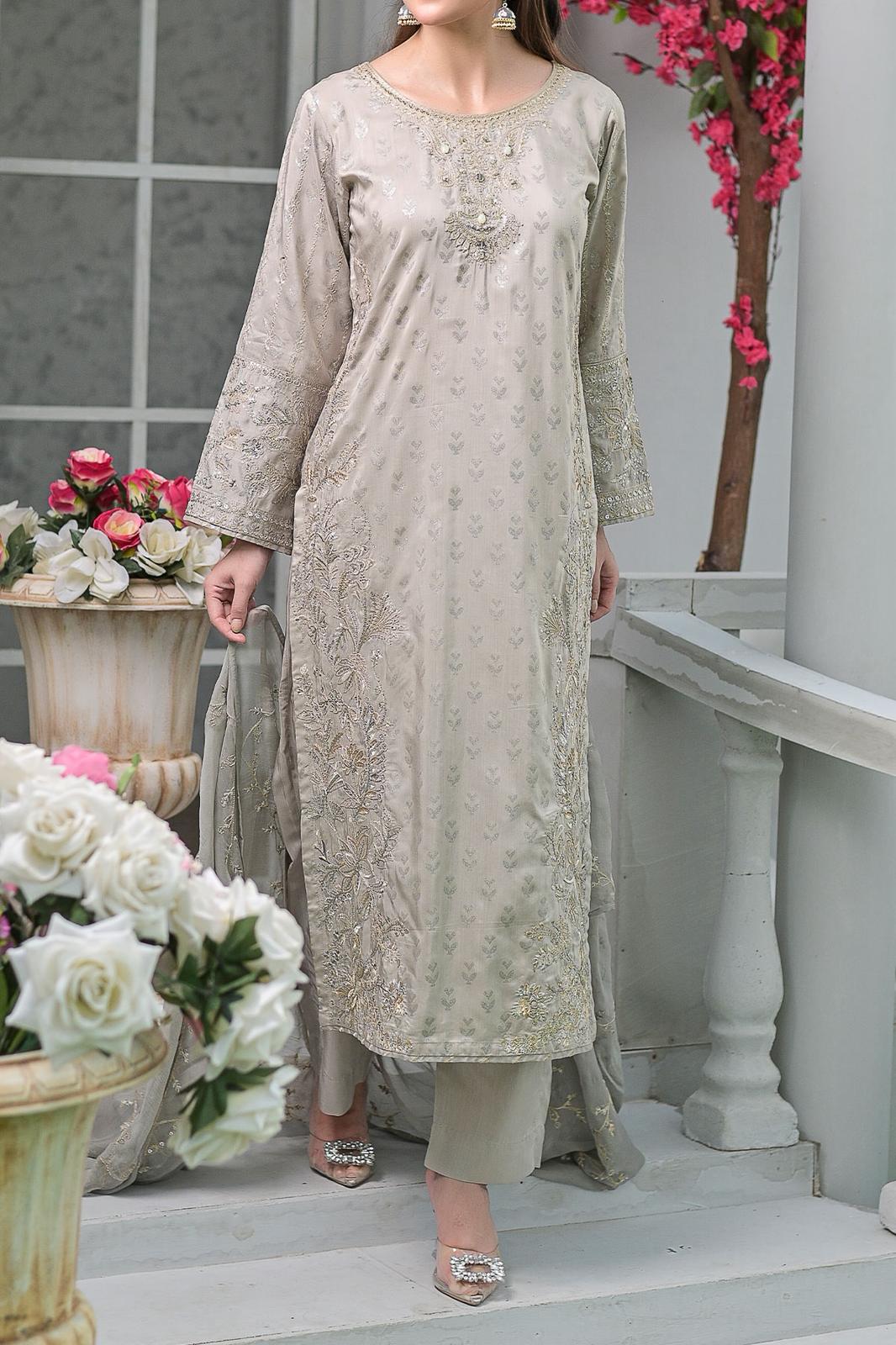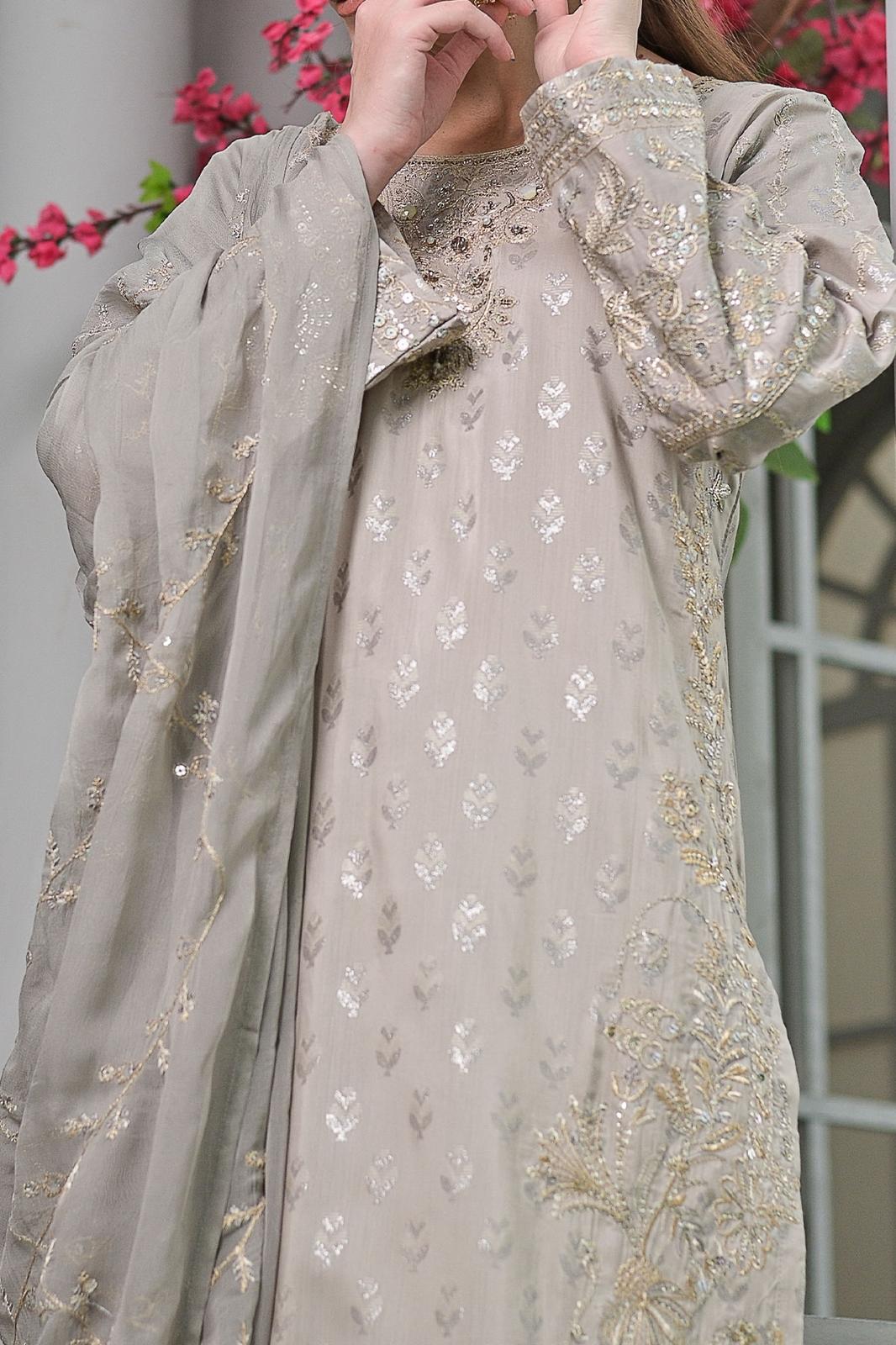 Work technique: Hand embellishment, embroidery work with thread sequins tilla, fabrication