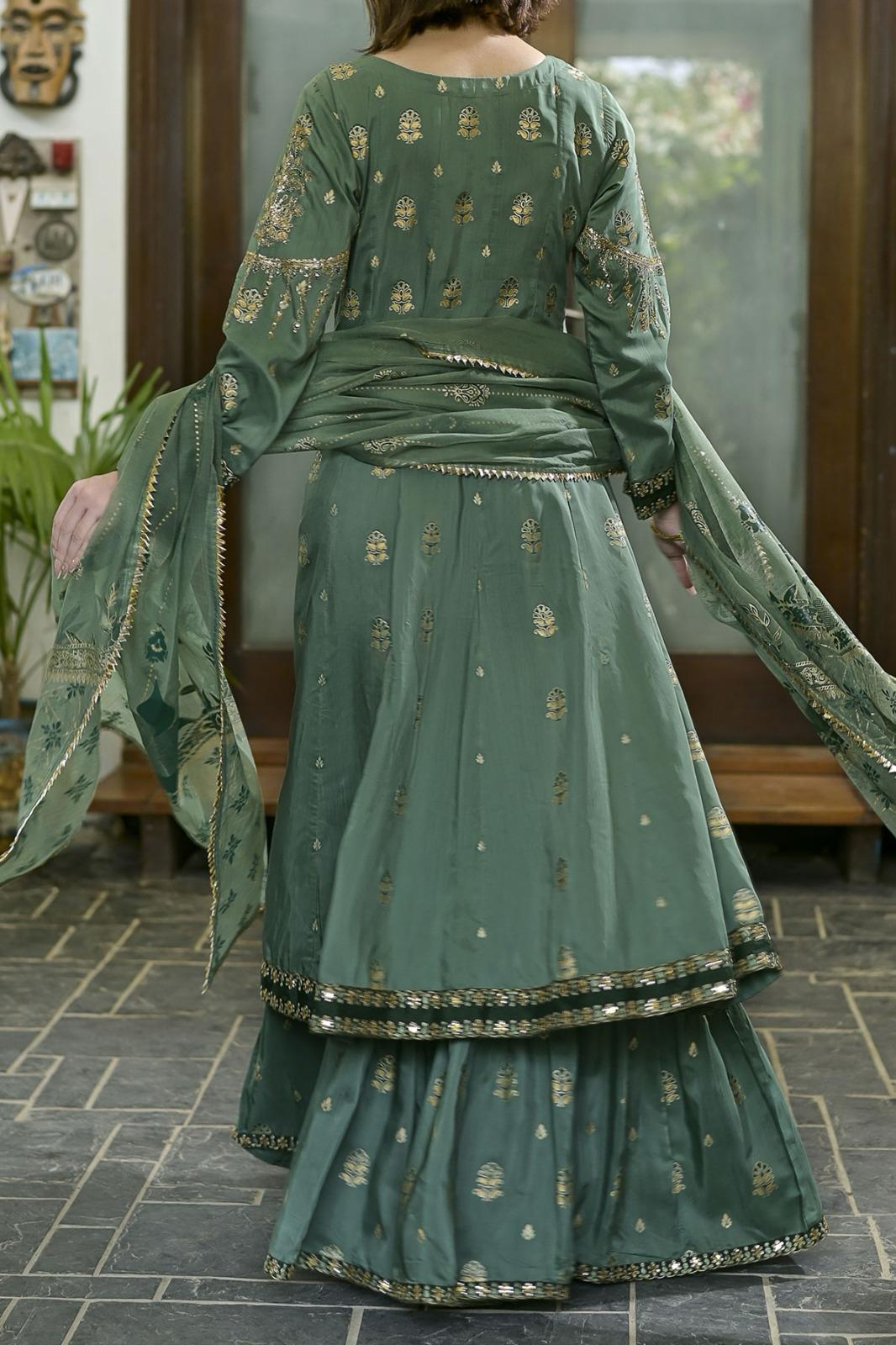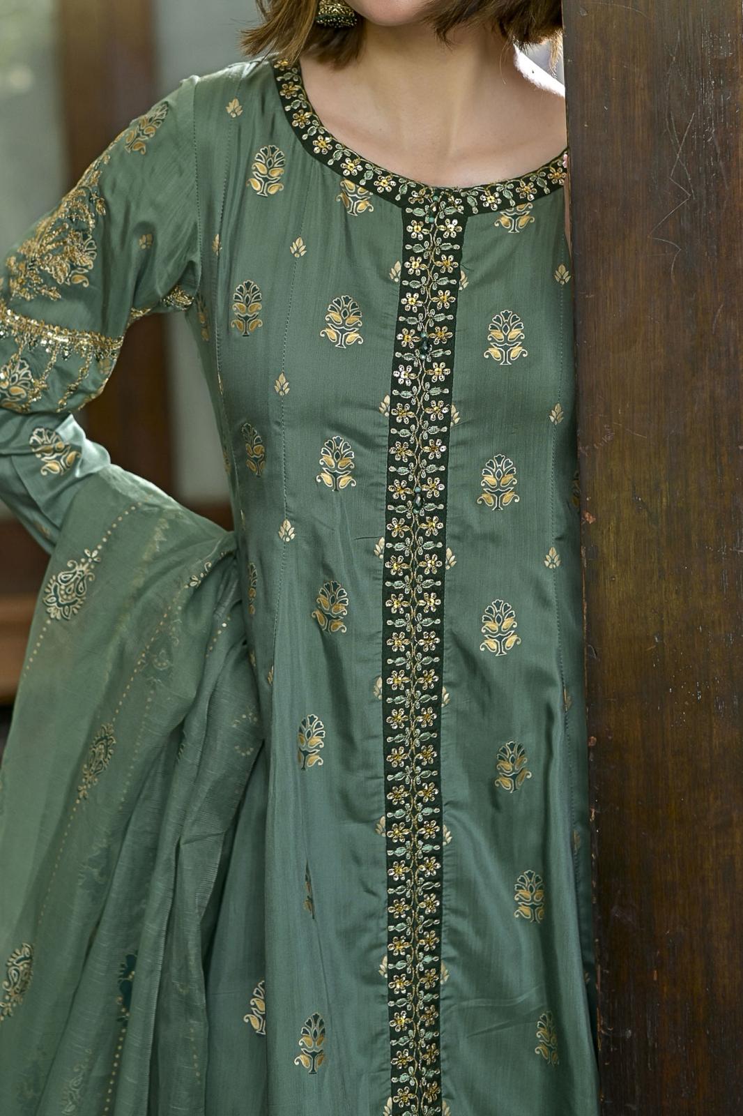 Sage Green Embroidery with Sequin Frock