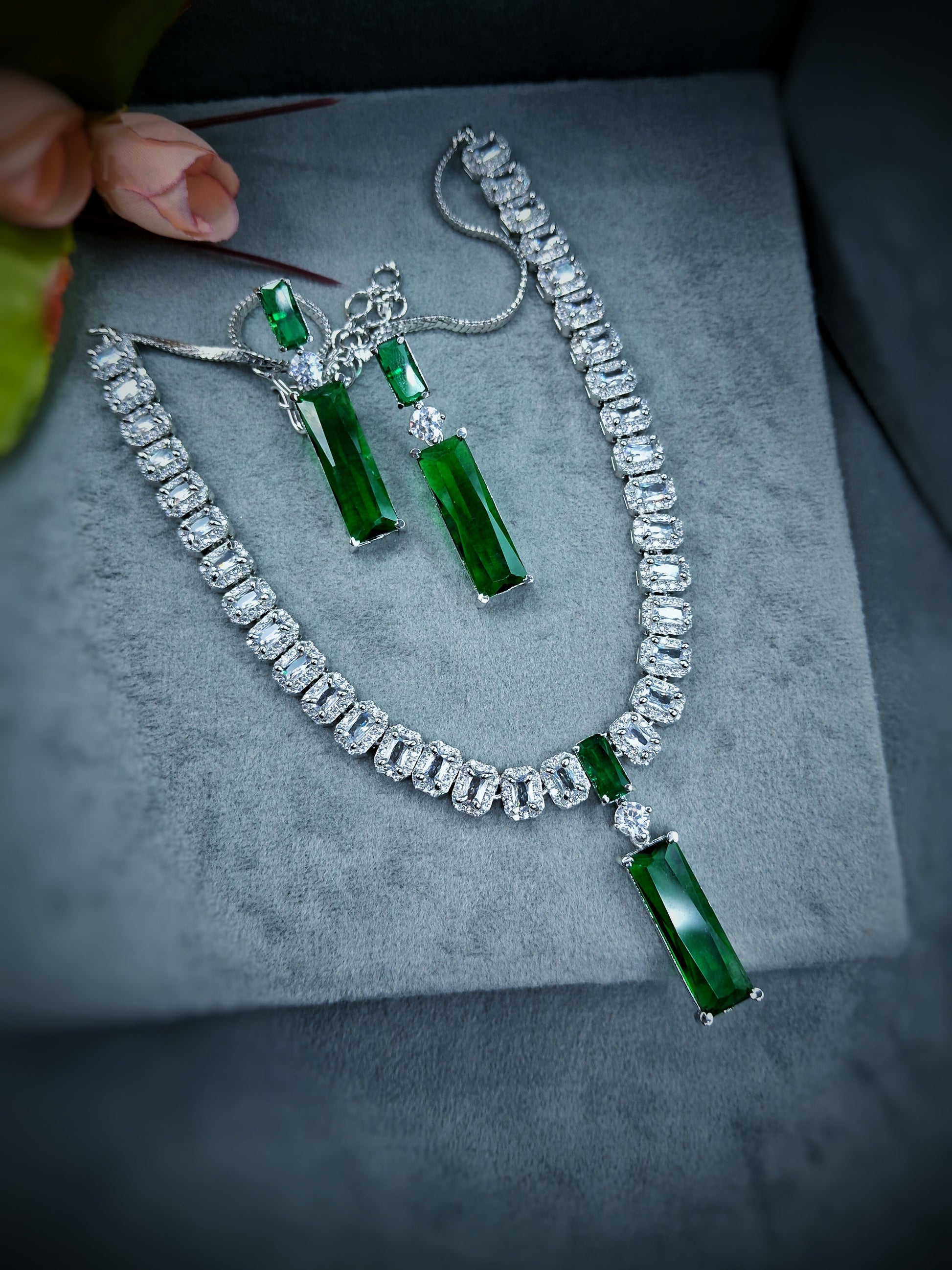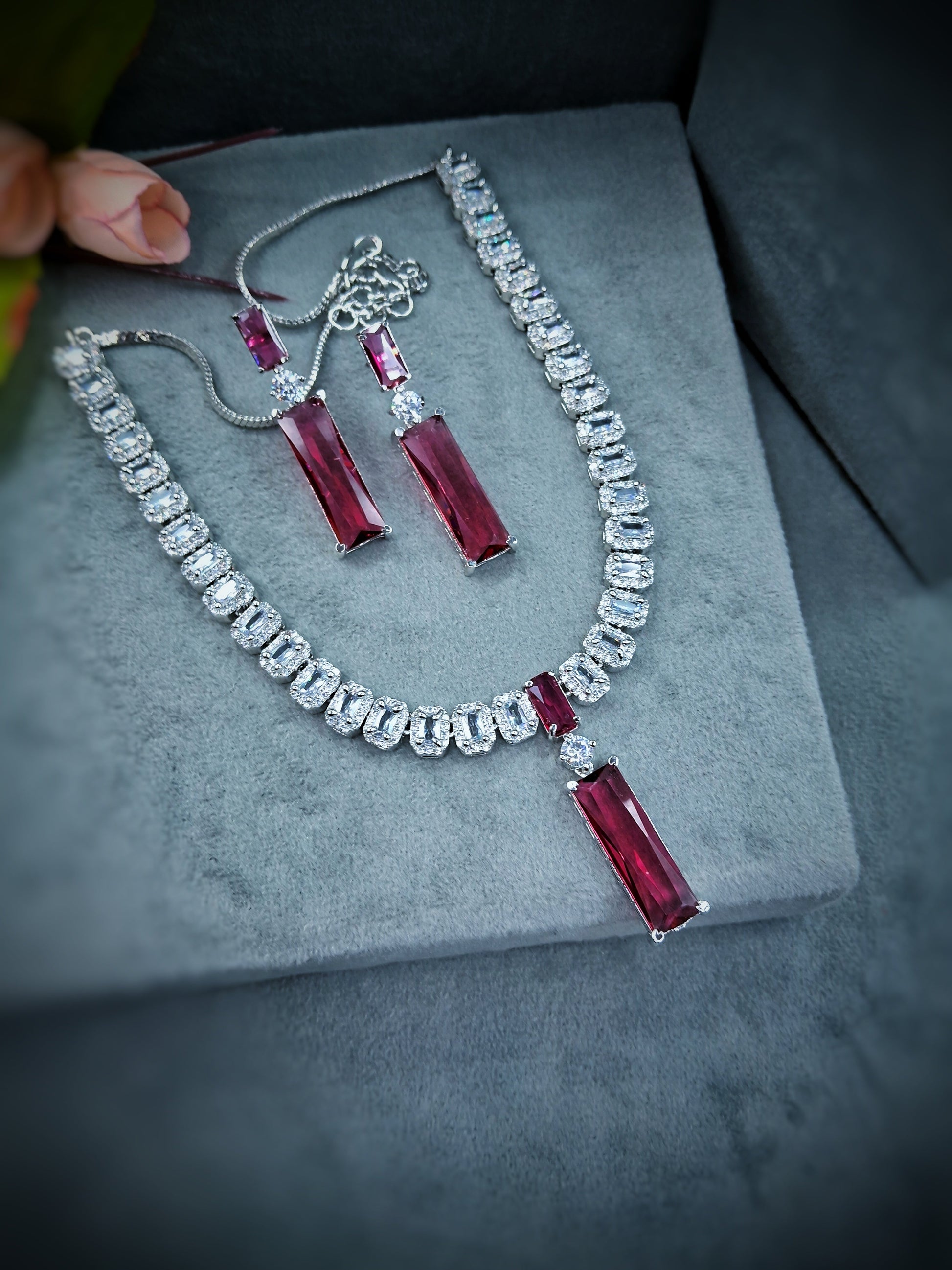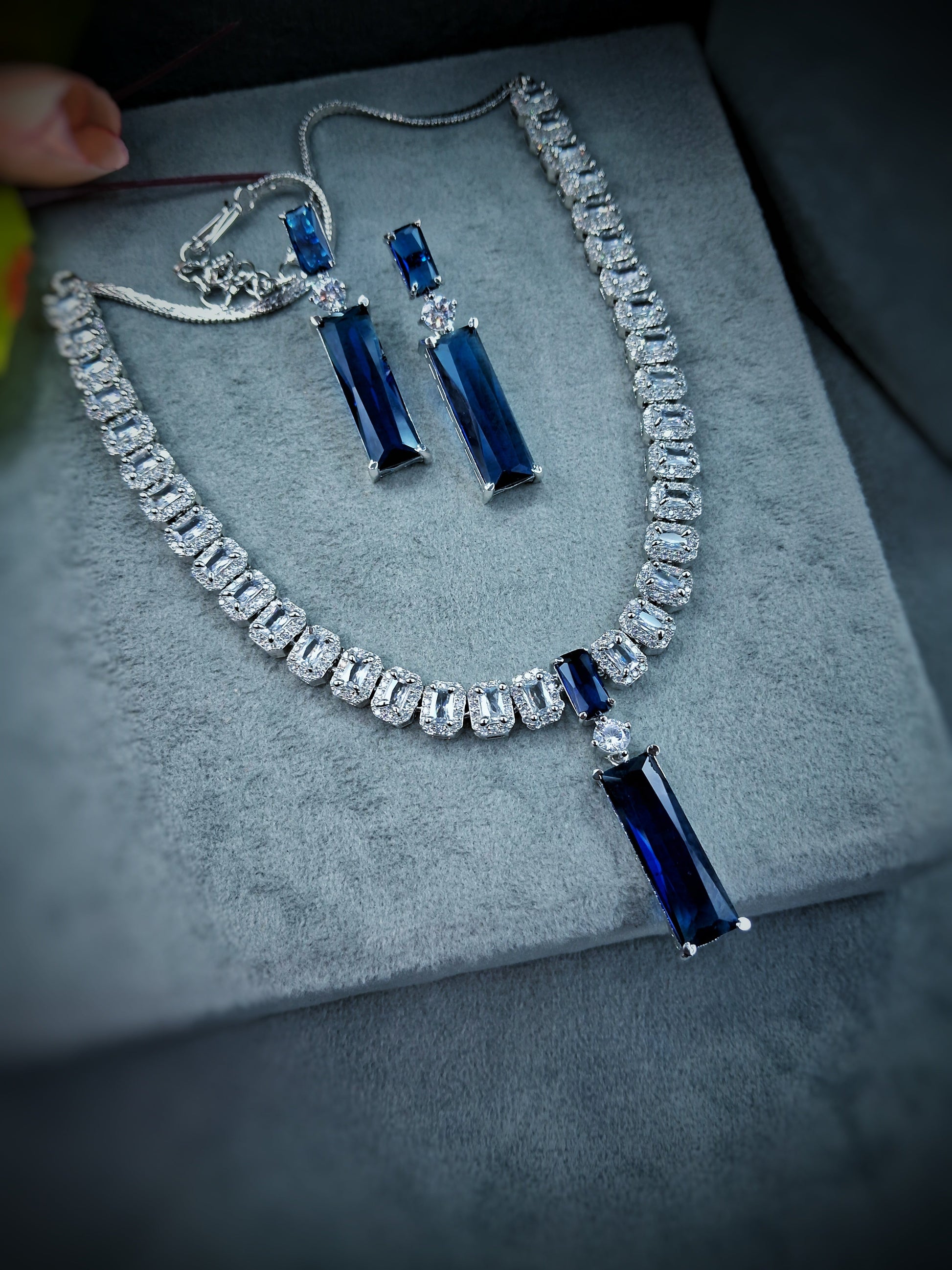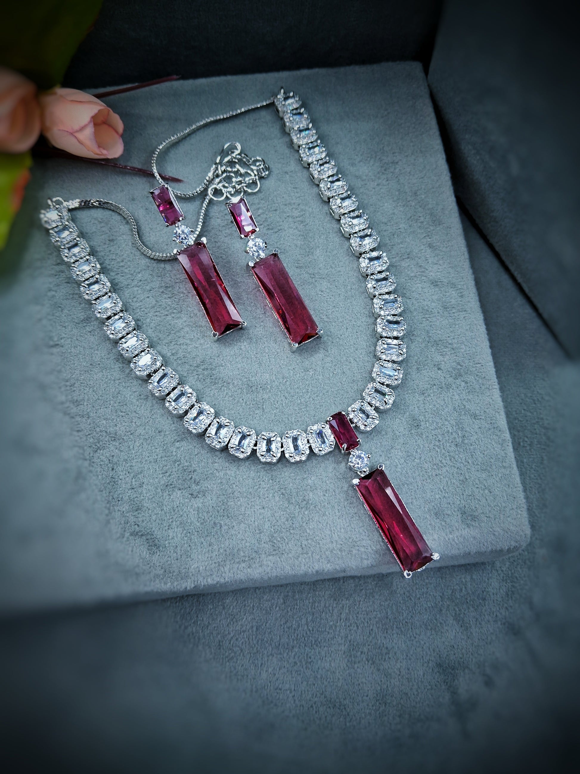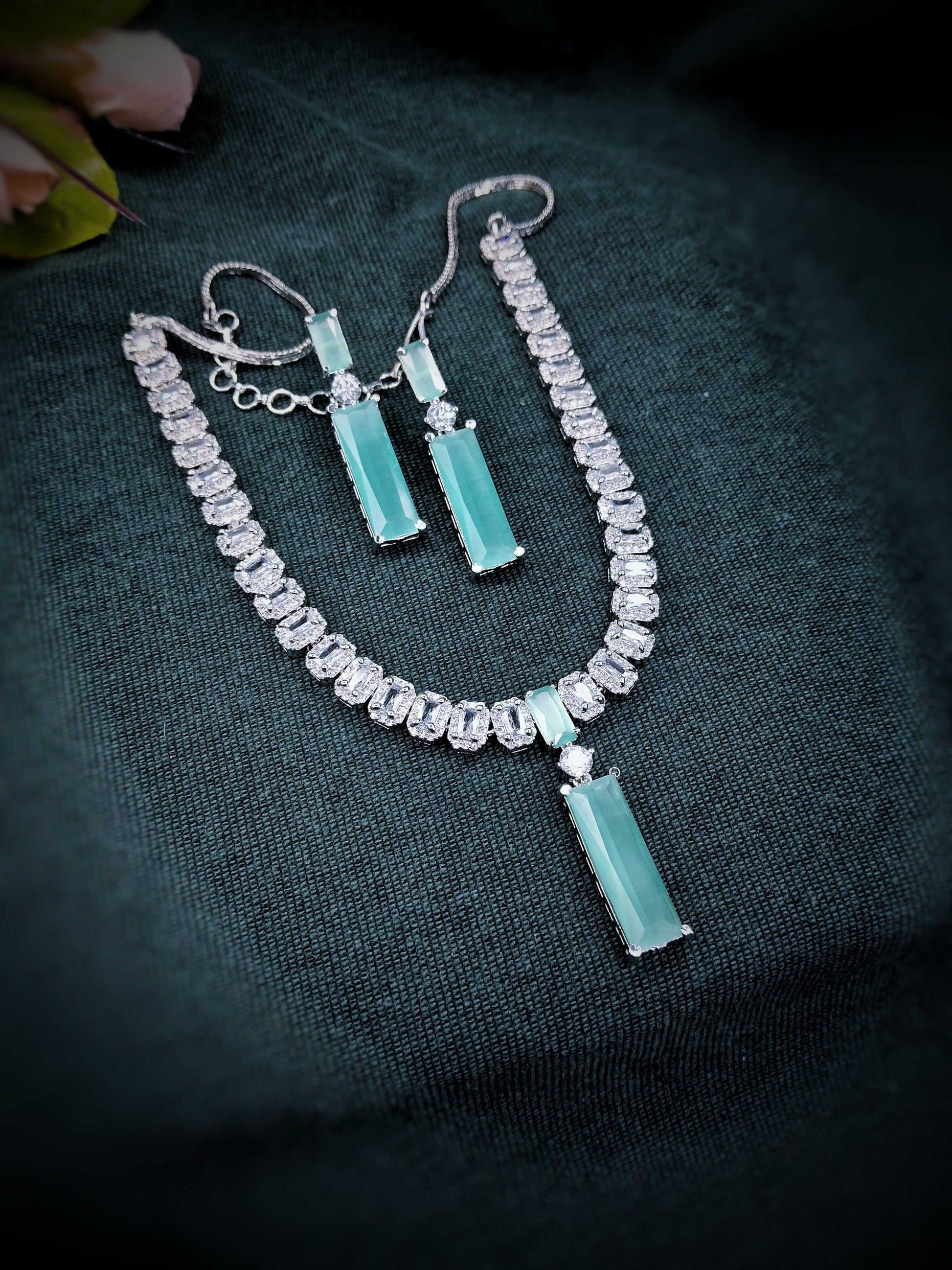 Item -CZ or American Diamond, Silver Color Finished Necklece Set, Plating - White Rhodium Plated, Color Stones